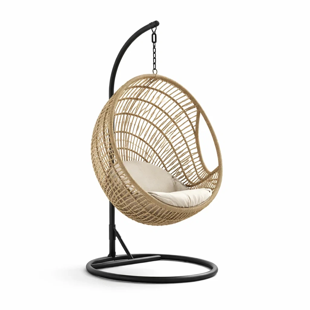 Poltrona sospesa a uovo in rattan sintetico con supporto in acciaio