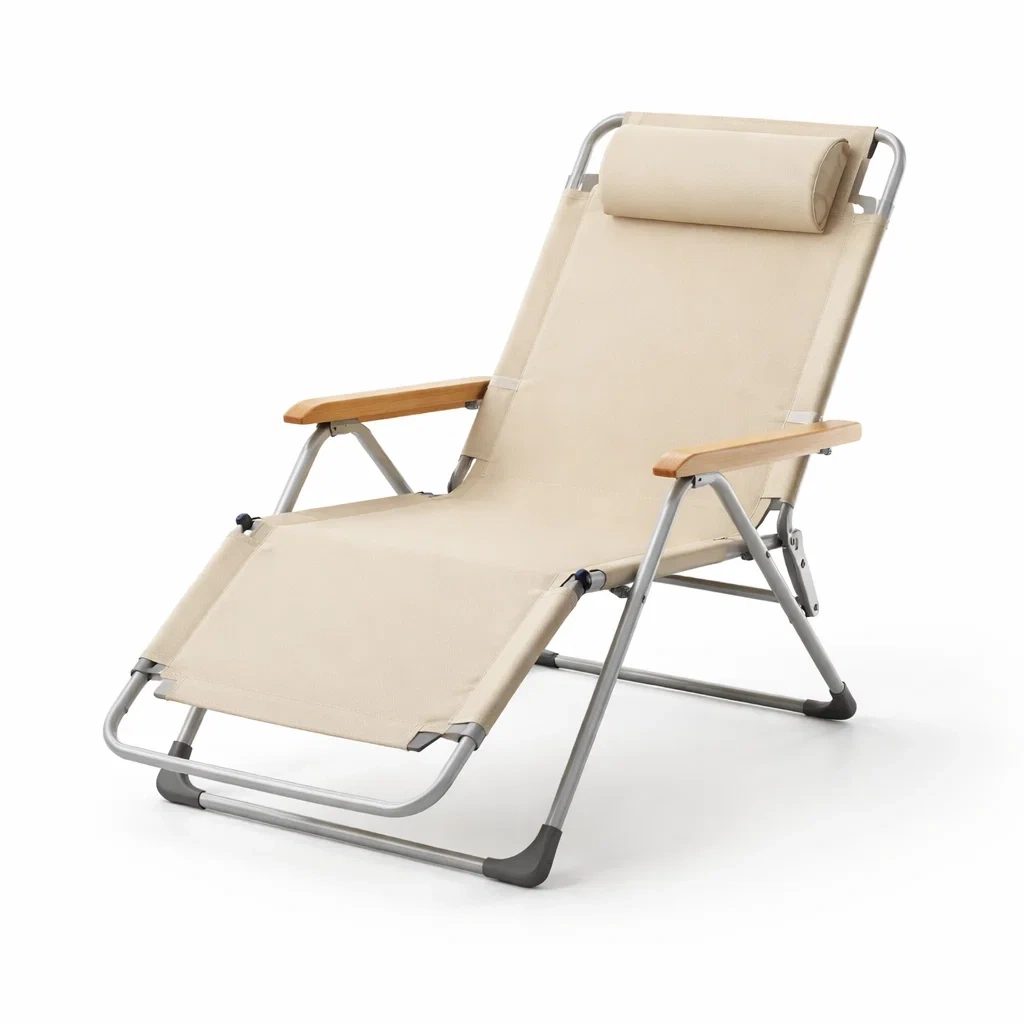 Sdraio pieghevole in legno e tessuto beige