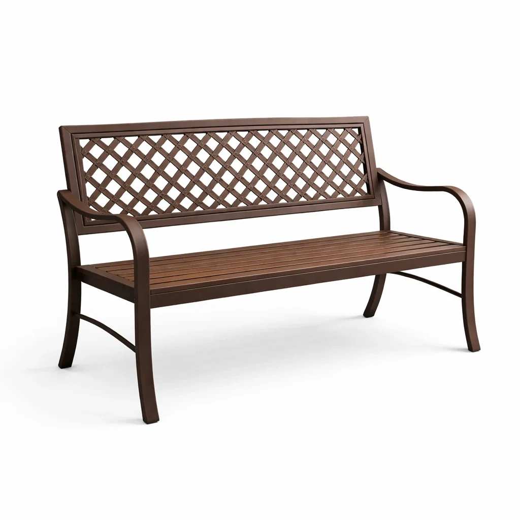 Panchina in metallo e legno marrone