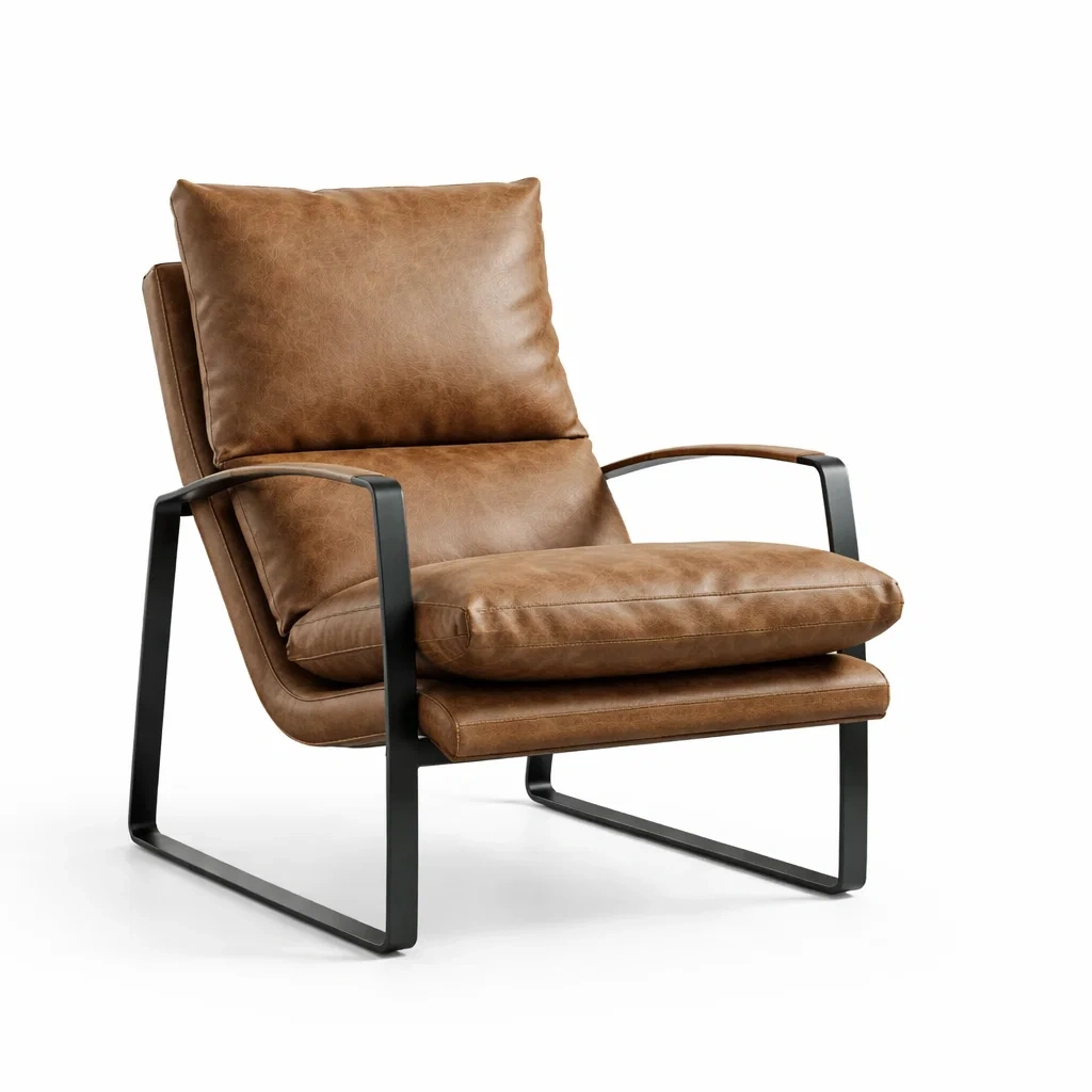 Poltrona in pelle pu marrone e metallo 80x90x75 cm