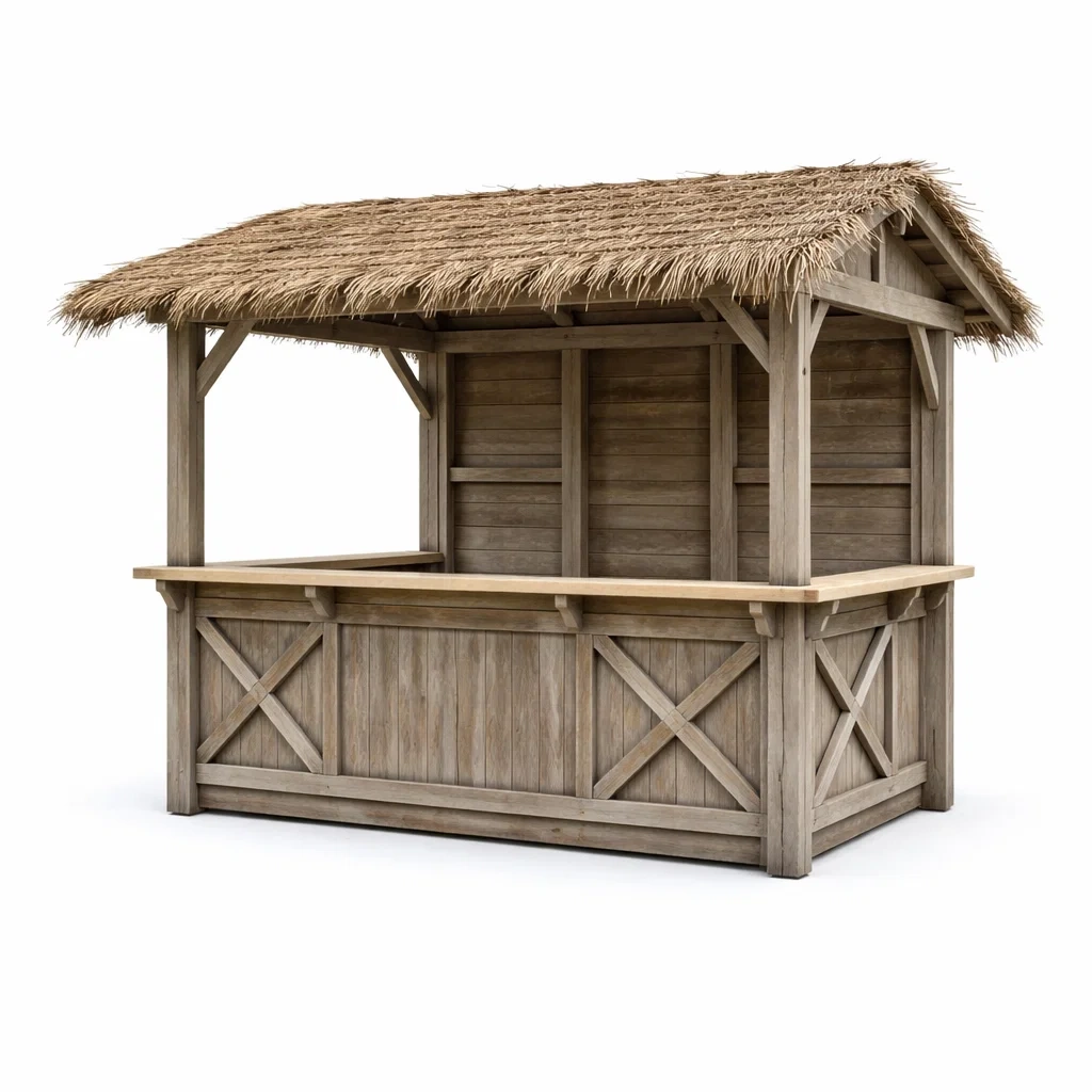 Struttura: Telaio in legno con tetto in paglia tradizionale.