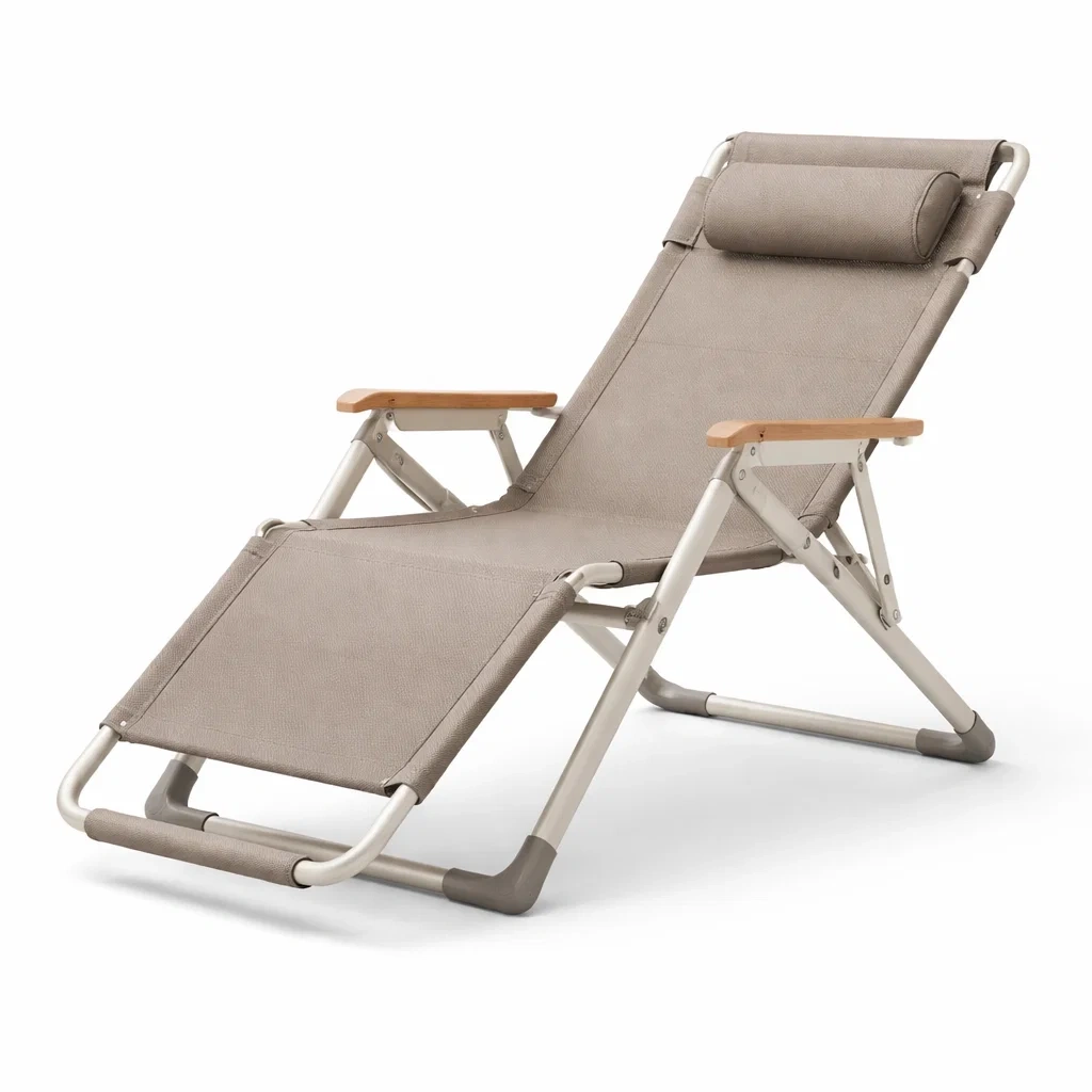 Sdraio pieghevole in metallo e tessuto colore taupe